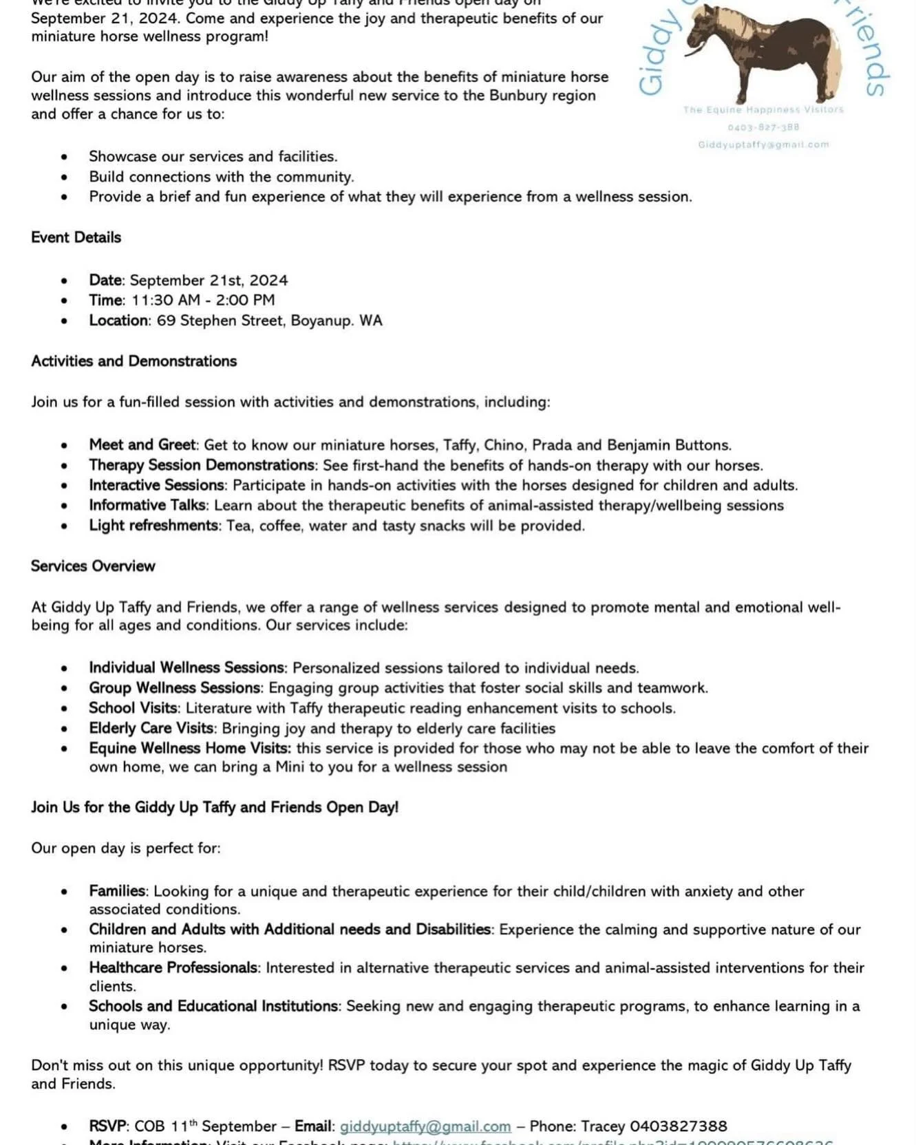 A personalised, one-on-one session with Tracey and her miniature horses, designed to meet your unique needs.
